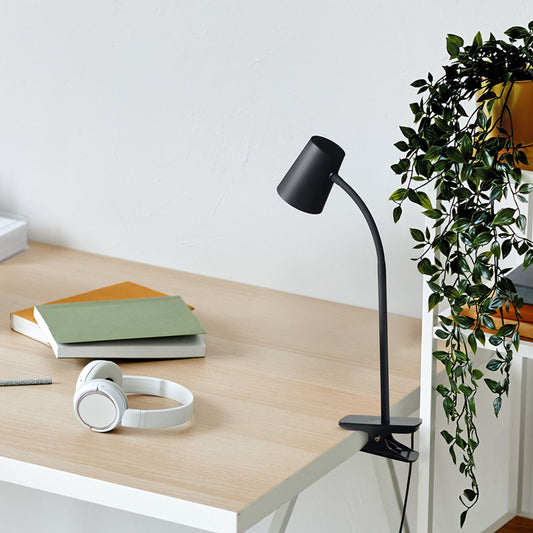 LED lampa na svorke, s kužeľovitým tienidlom a ohybným krkom. Ovládač je umiestnený na svorke lampy. Maximálne rozpätie svorky je 2,5 cm. Trojstupňové stmievanie.