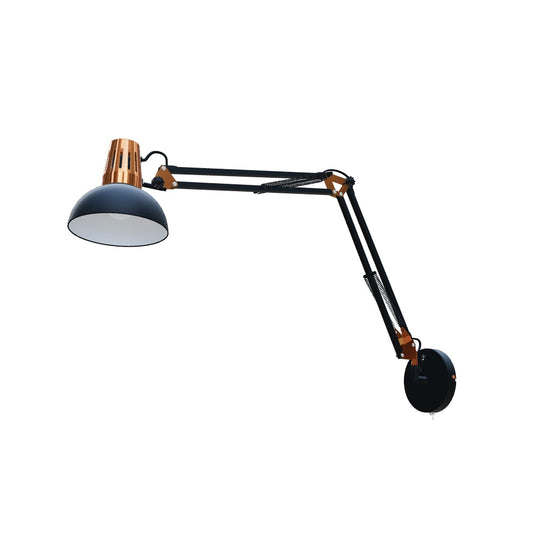 Nástenná pracovná nastaviteľná lampa s vypínačom na základni.