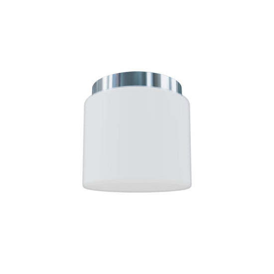 Stropný valec z opálového skla na chrómovej základni. Vhodné do vlhkého prostredia.