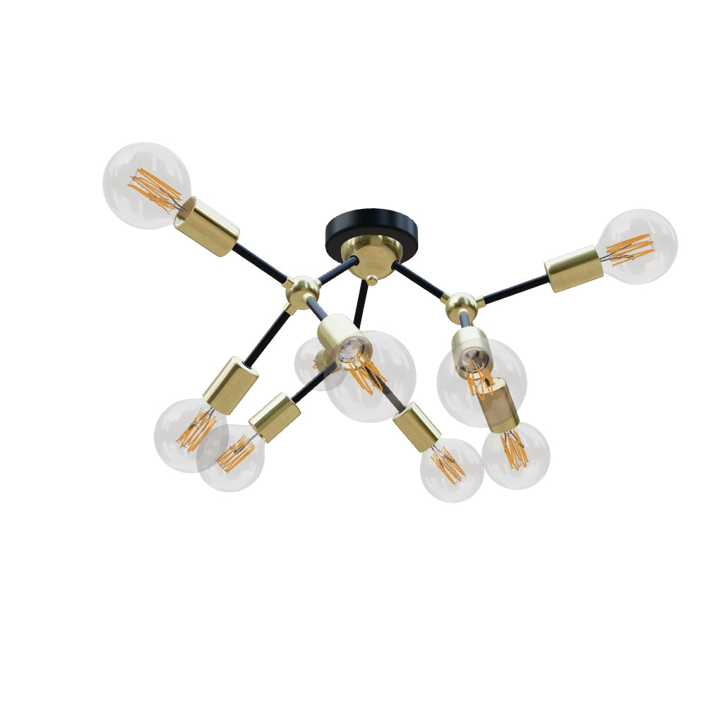ARTEMIA 9 ceiling black brushed brass 230V LED E27 9x15W