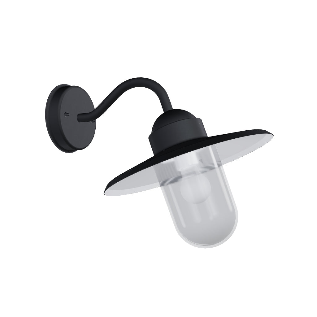 Vonkajšia nástenná retro lampa s čírym skleneným tienidlom, na žiarovku s päticou E27.