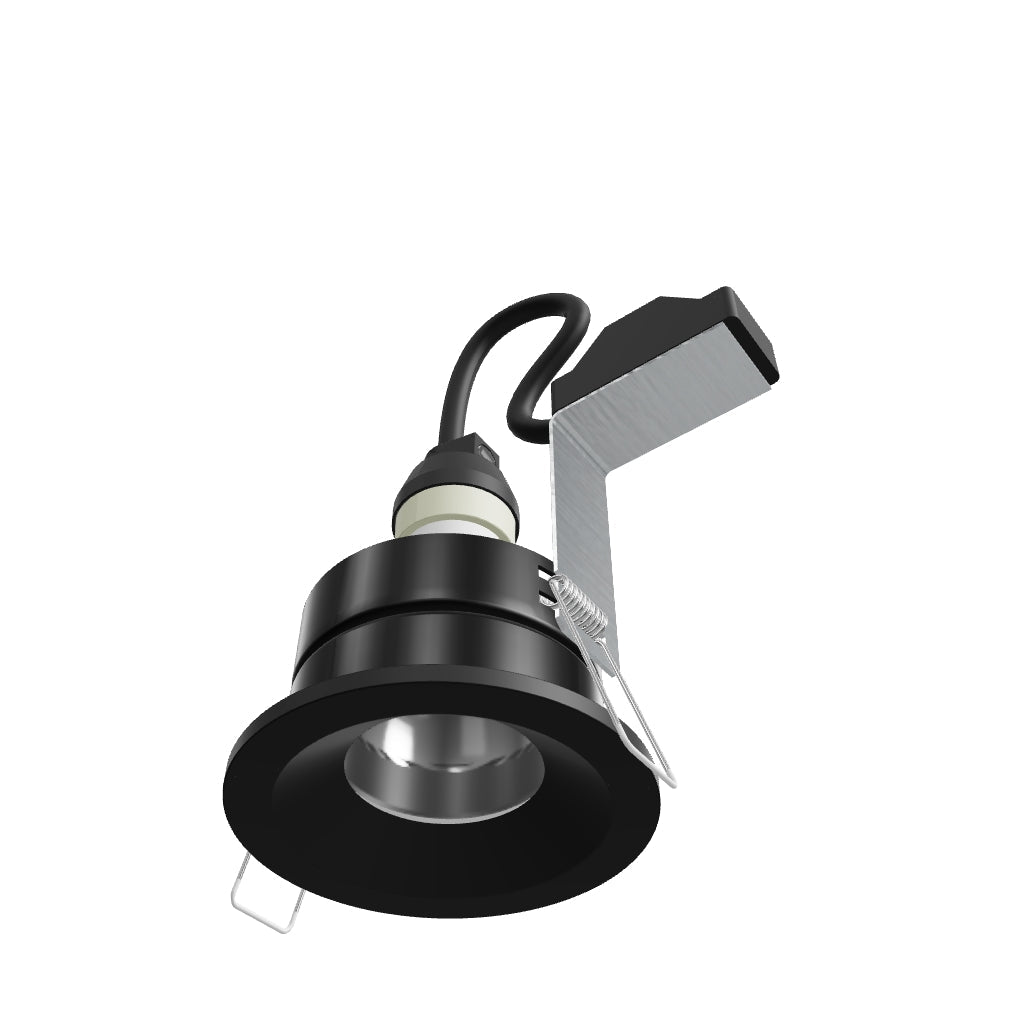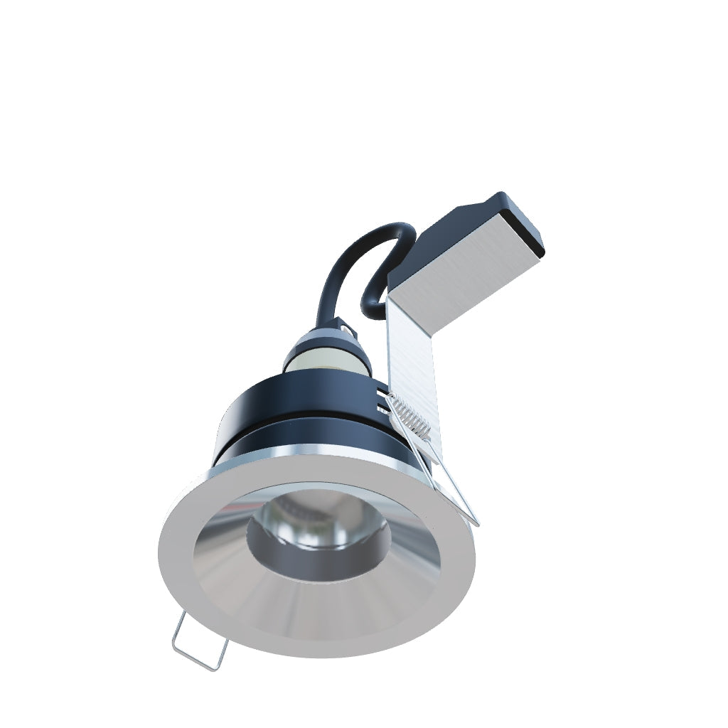 Vstavateľné kúpeľňové svietidlo do sadrokartónových stropov, so zapusteným reflektorom, na LED žiarovky s päticou GU10.