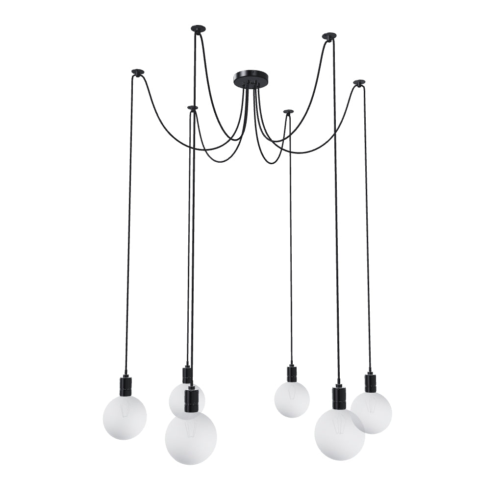 Závesné svietidlo s centrálnou stropnou základňou a šiestimi samostatnými závesmi s päticou E27. Závesy sú vybavené stropným držiakom, ktorý možno umiestniť do ľubovoľnej vzdialenosti od základne, v rámci dĺžky kábla (2 m).