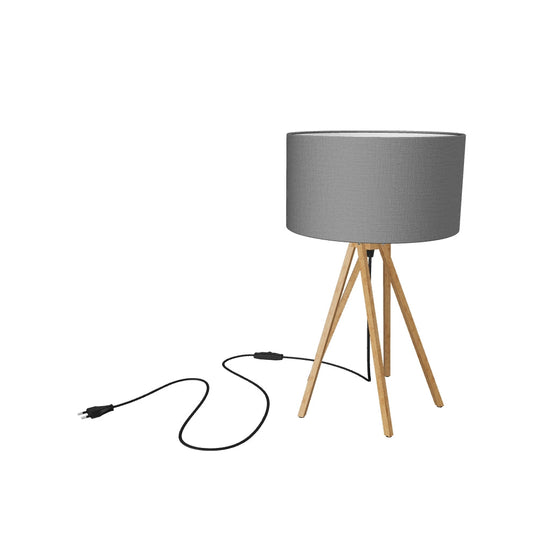 Stolné svietidlo s bambusovým podstavcom a textilným tienidlom. Dodáva sa rozložené, treba poskladať.