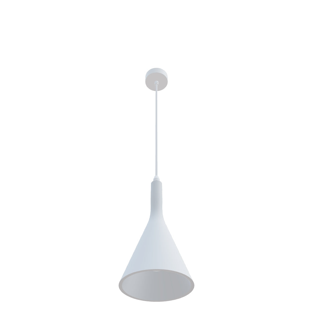 Závesné sadrové svietidlo na LED svetelný zdroj s päticou E27. Stropná základňa z nabielo lakovaného kovu. Tienidlo možno premaľovať interiérovými farbami.