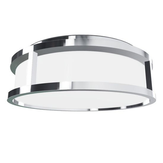 Stropné kúpeľňové LED svietidlo s plochým opálovým sklom v kovovom ráme.