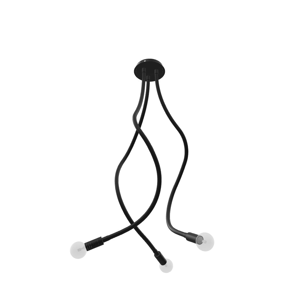 Stropné svietidlo s tromi ohybnými ramenami potiahnutými silikónovou bužírkou, flexibilne nastaviteľné na všetky strany. Na použitie s dekoratívnou alebo reflektorovou žiarovkou s päticou E27.