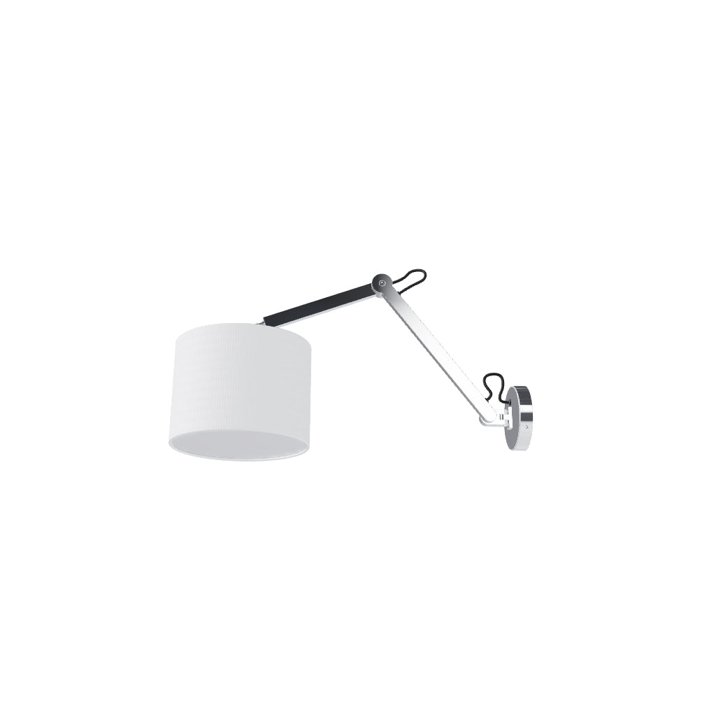 Nástenná dvojramenná lampa s textilným tienidlom.