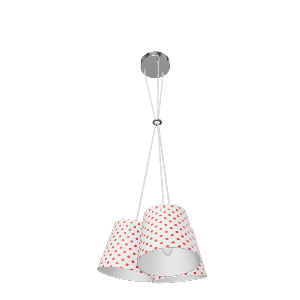 Závesná trojica textilných tienidiel na jednej základni, na tri žiarovky s päticou E14.