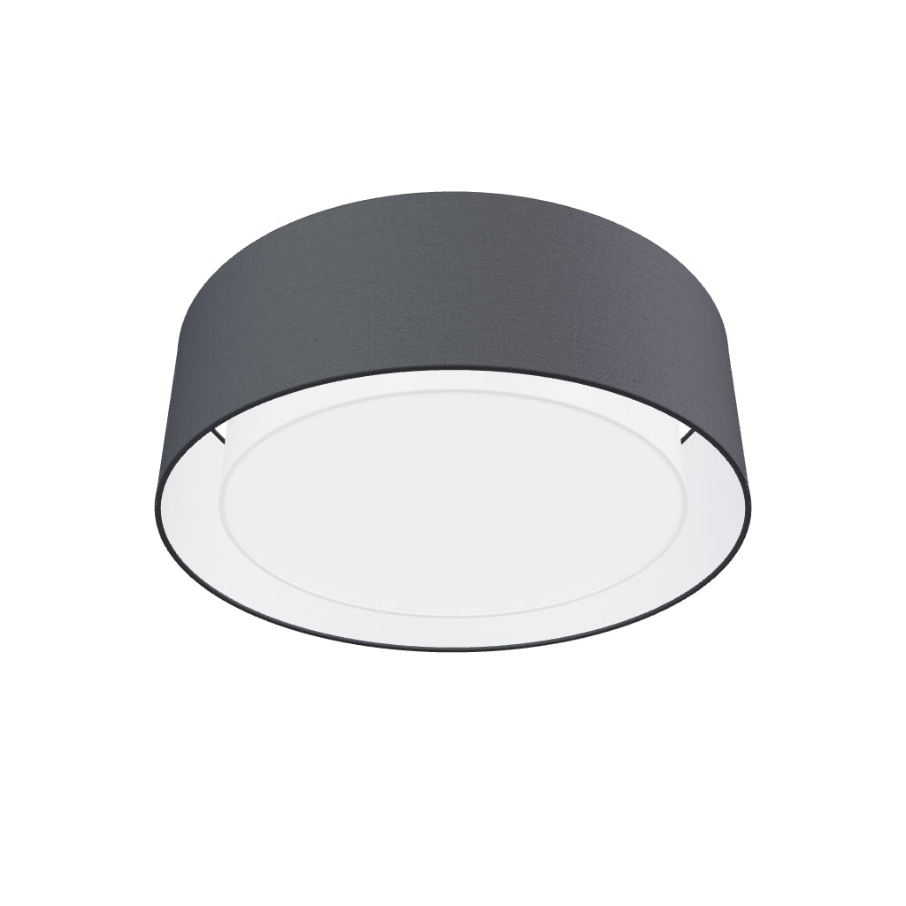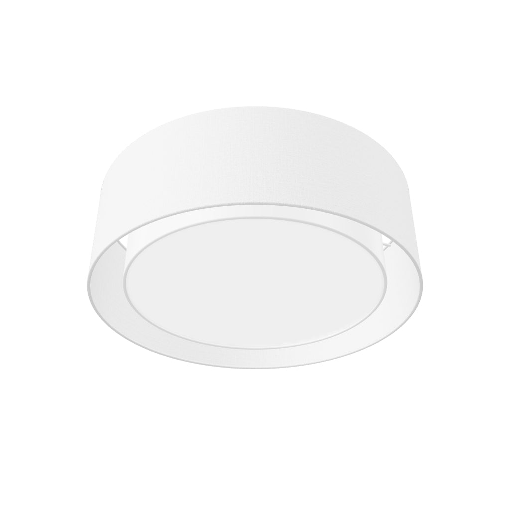 Stropné dvojité kruhové textilné svietidlo na tri žiarovky s päticou E27. Vnútorné tienidlo je vždy v bielom vyhotovení.