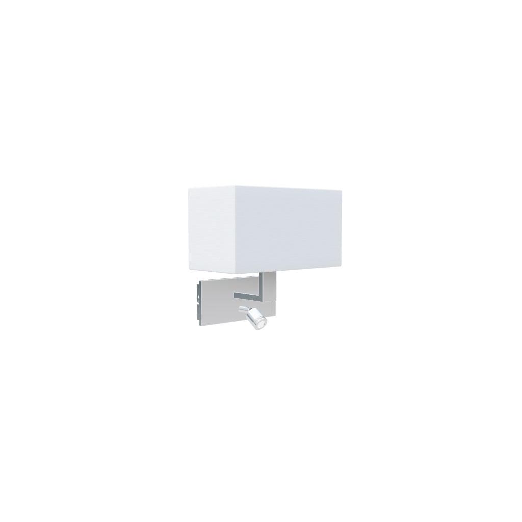 Nástenné svietidlo so štruktúrovaným textilným tienidlom a prídavným 3W LED reflektorom. Oba svetelné zdroje sa ovládajú samostatne vypínačom na základni.