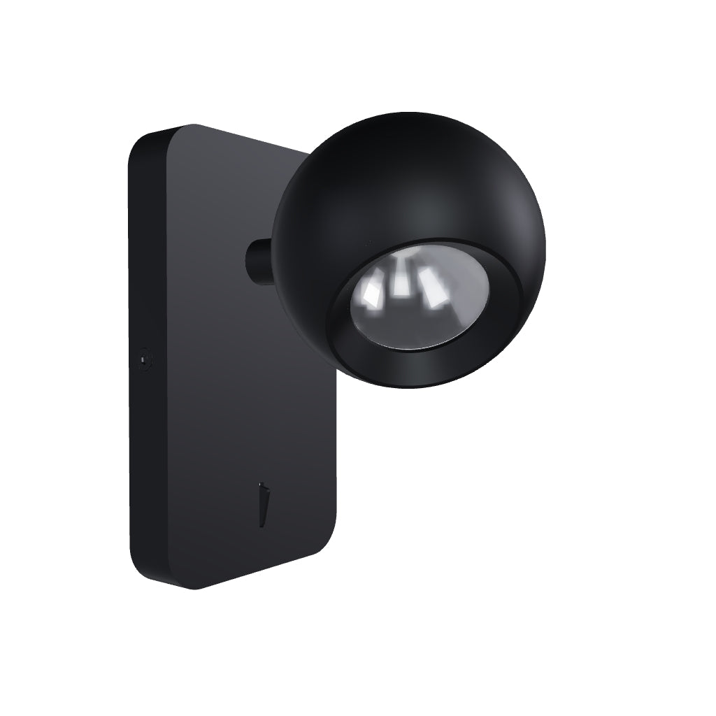 Nástenné lakované svietidlo s nakláňacím reflektorom na svetelné zdroje s päticou GU10. Vypínač je umiestnený na základni.