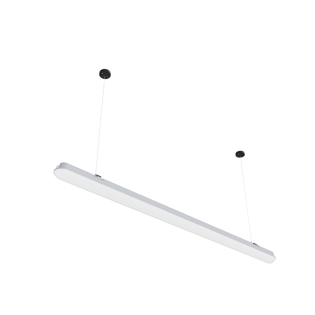 Priemyselné lineárne LED svietidlo na stropnú montáž alebo na zavesenie pomocou súpravy G13672. Vysoký výkon a ochrana IP65. Dodáva sa bez závesnej súpravy a prívodného kábla. Možnosť prepojiť tieto svietidlá navzájom do série.