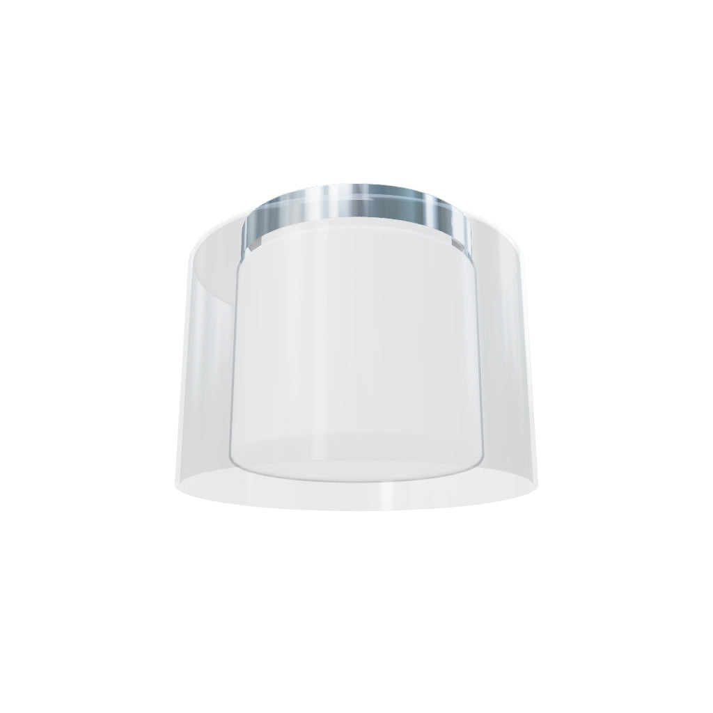 Stropné svietidlo v kombinácii vnútorného opálového a vonkajšieho číreho skla na chrómovej základni, na LED žiarovky s päticou E27. Vhodné do vlhkého prostredia.